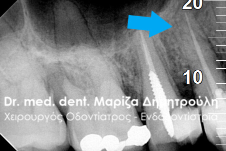 Μετά τον ακτινογραφικό έλεγχο διαπιστώθηκε οτι η παλιά απονεύρωση ήταν ελλιπής/ ατελής στο άκρο της ρίζας του δοντιού.