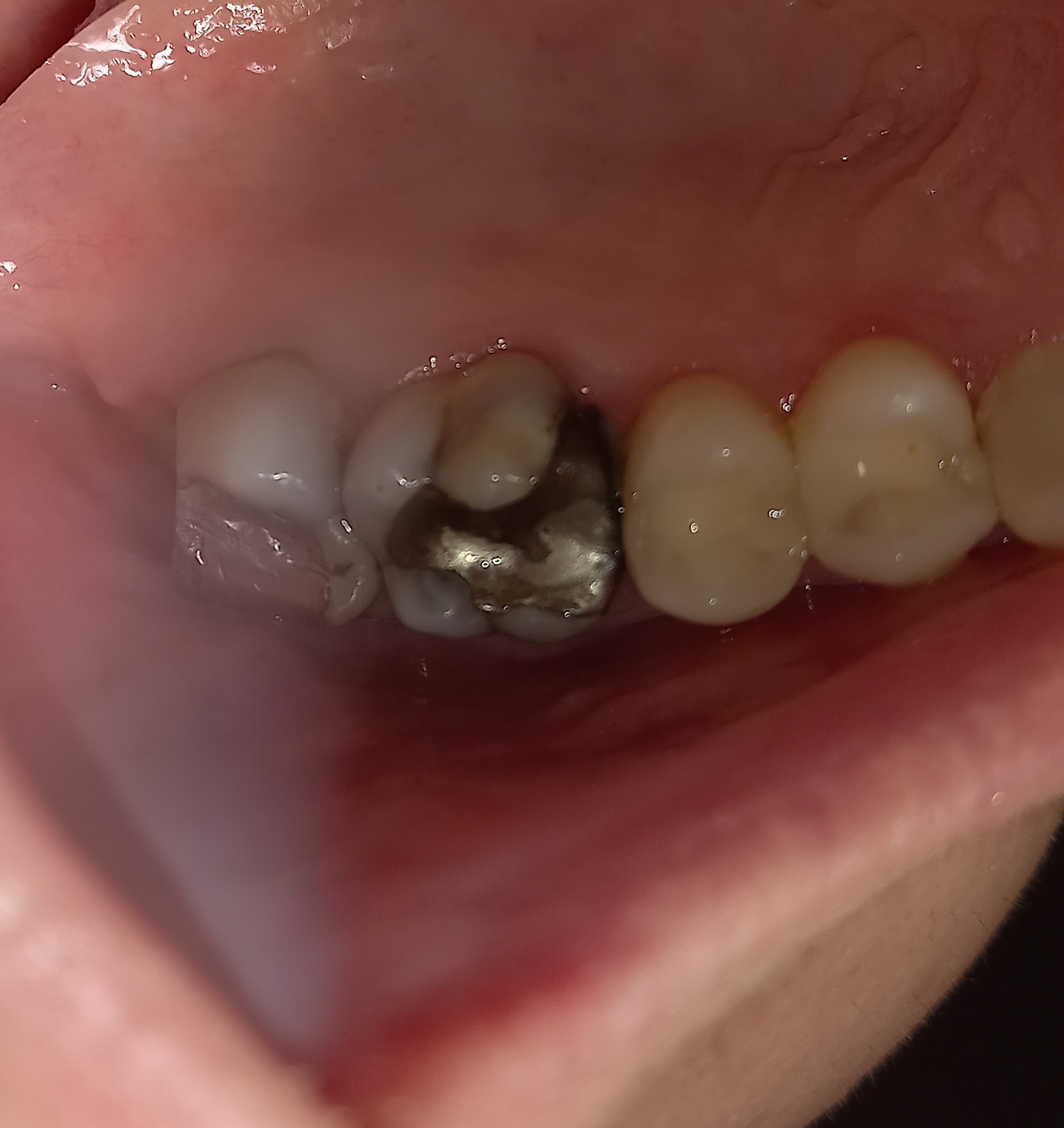 Το σημείο της στεφάνης που τροχίστηκε γλωσσικά έκλεισε με σφράγισμα σύνθετης ρητίνης. Αυτή ήταν μία συμβιβαστική λύση σε συνεννόηση με τον ασθενή, προκειμένου το δόντι να παραμείνει στο στόμα και να μην εξαχθεί.