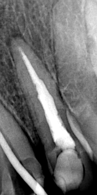 Η ακτινογραφική εξέταση μαρτυρά την ύπαρξη κενού χώρου μεταξύ της έμφραξης της ρίζας του δοντιού και των εσωτερικών τοιχωμάτων της ρίζας.