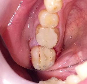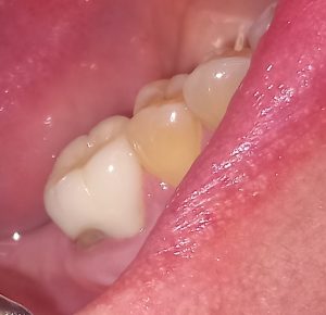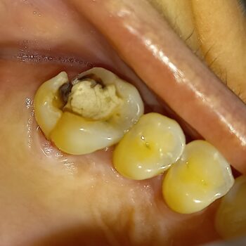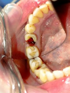 Ο ασθενής έσπασε το δόντι του κατά τη διάρκεια του γεύματος του. Το δόντι ήταν απονευρωμένο και δυστυχώς ο ασθενής καθυστερούσε την κάλυψη και προστασία του δοντιού με θήκη / στεφάνη δοντιού. Αυτό είχε ως αποτέλεσμα το δόντι μετά από κάποιο χρονικό διάστημα να σπάσει και να πρέπει να εξαχθεί από το στόμα το ασθενή. Αν το δόντι είχε προστατευτεί με θήκη, το δόντι θα μπορούσε να είχε σωθεί και ο ασθενής δε θα έχανε το δόντι του.