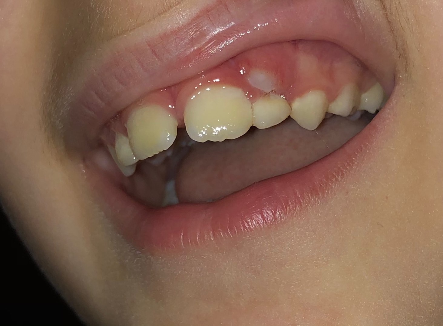 Η μικρή ασθενής έβγαλε το μόνιμο δόντι της πίσω από το αντίστοιχο νεογιλό δόντι, το οποίο όμως δεν “έπεσε” φυσιολογικά όπως συμβαίνει με τα παιδικά δοντάκια. Υπό φυσιολογικές συνθήκες ένα νεογιλό δόντι αρχίζει να κουνιέται, πέφτει και τη θέση του παίρνει το αντίστοιχο μόνιμο δοντάκι. Σε κάποιες περιπτώσεις όπως αυτή του μικρού κοριτσιού, το νεογιλό παρέμενε στη θέση ενώ είχε κάνει την εμφάνιση του το μόνιμο δόντι. Το παιδικό δόντι αφαιρέθηκε και σιγά – σιγά το μόνιμο δόντι θα έρθει στη φυσιολογική του θέση.