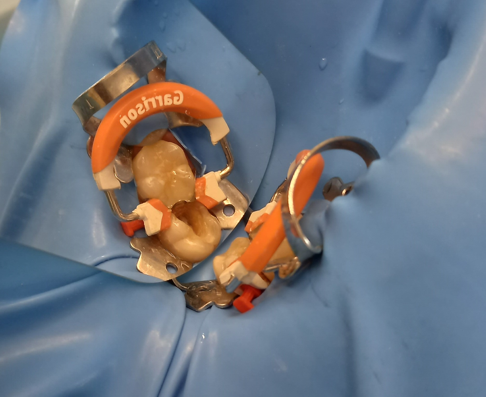 Εικόνα του δοντιού με τον ελαστικό απομονωτήρα και το τεχνητό τοίχωμα