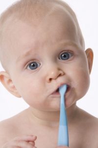 Το βούρτσισμα των δοντιών ξεκινάει με την ανατολή του πρώτου δοντιού, δηλαδή στην ηλικία των 6-9 μηνών. Αυτό βέβαια δε σημαίνει οτι πριν την εμφάνιση των νεογιλών δοντιών δε θα πρέπει να καθαρίζεται το στόμα του βρέφους. Μετά την κατανάλωση του γάλακτος είναι καλό ο γονιός με μία βρεγμένη γαζούλα να καθαρίζει απαλά τα ούλα του μωρού. Μ΄ αυτόν το τρόπο αφενός διατηρείται το στόμα του παιδιού καθαρό και αφετέρου το παιδί συνηθίζει υποσυνείδητα στην ιδέα της στοματικής υγιεινής, παρόλο που έιναι τόσο μικρό.