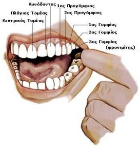 | Τρίτοι γομφίοι | 17 – 21 ετών | 17 – 21 ετών |