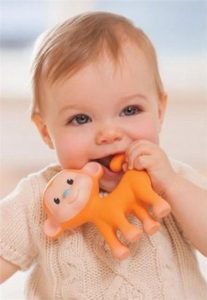 Δάγκωμα αντικειμένων. Πολλές φορές τα παιδάκια όταν βγάζουν τα πρώτα τους δοντάκια δαγκώνουν διάφορα σκληρά αντικείμενα καθώς τους ανακουφίζει από τον πόνο.