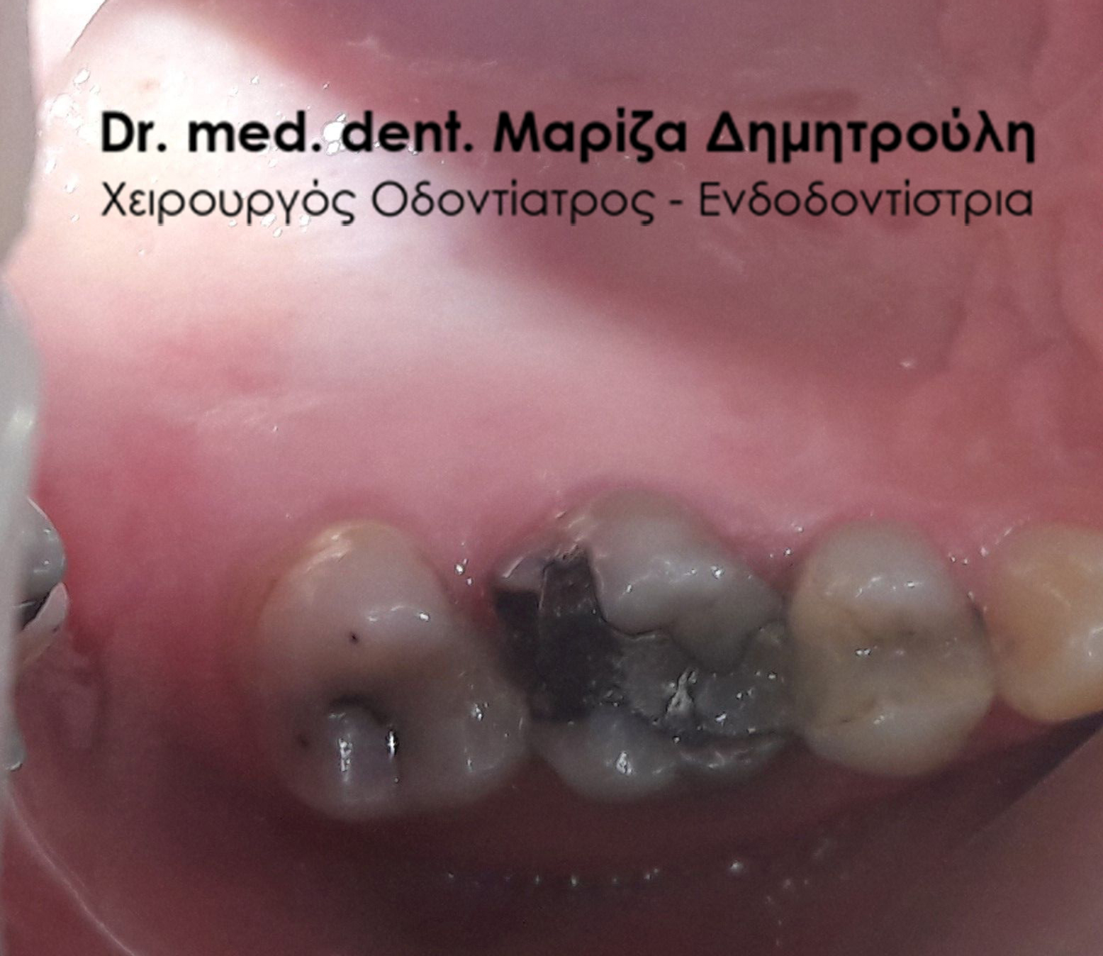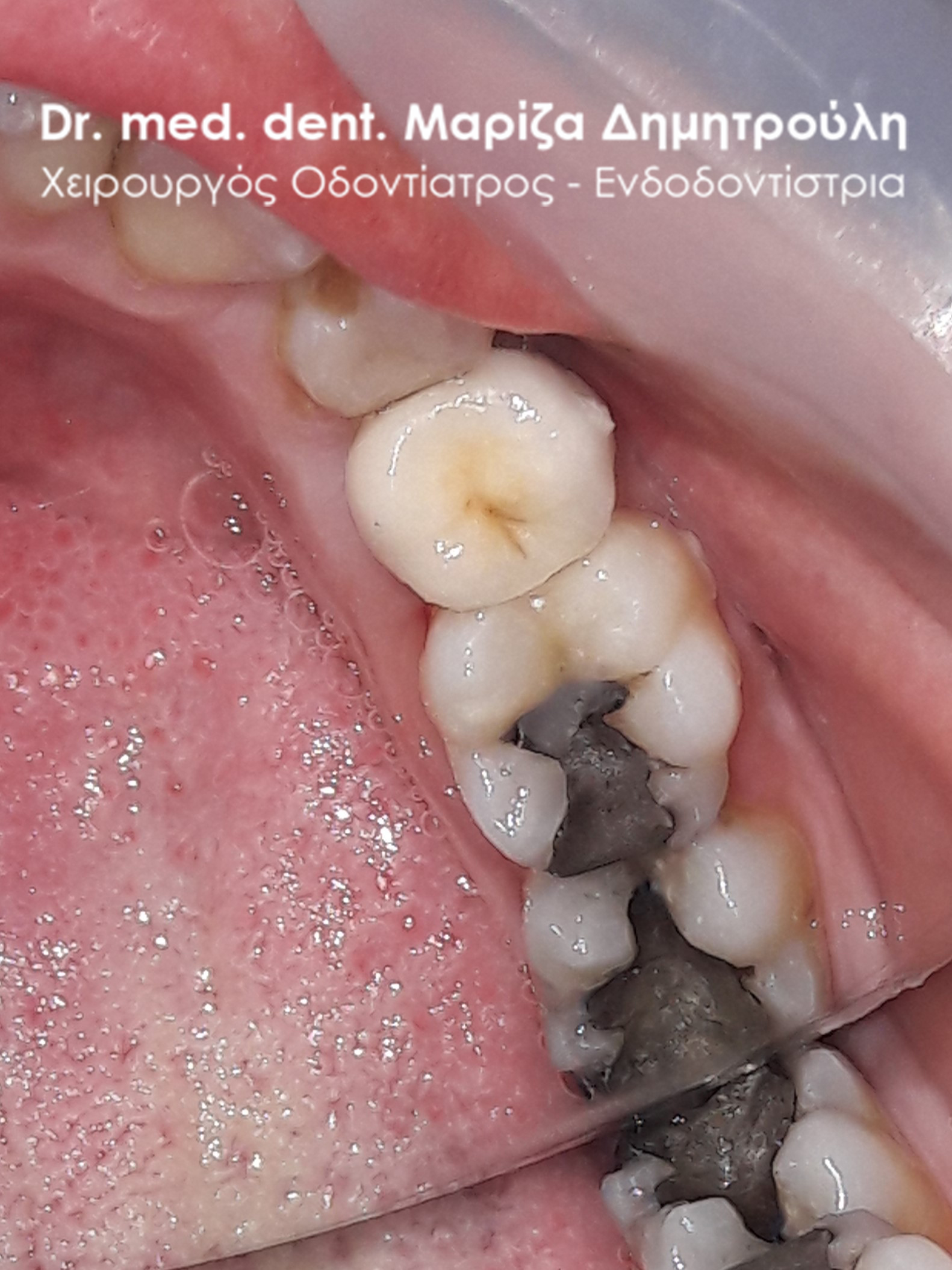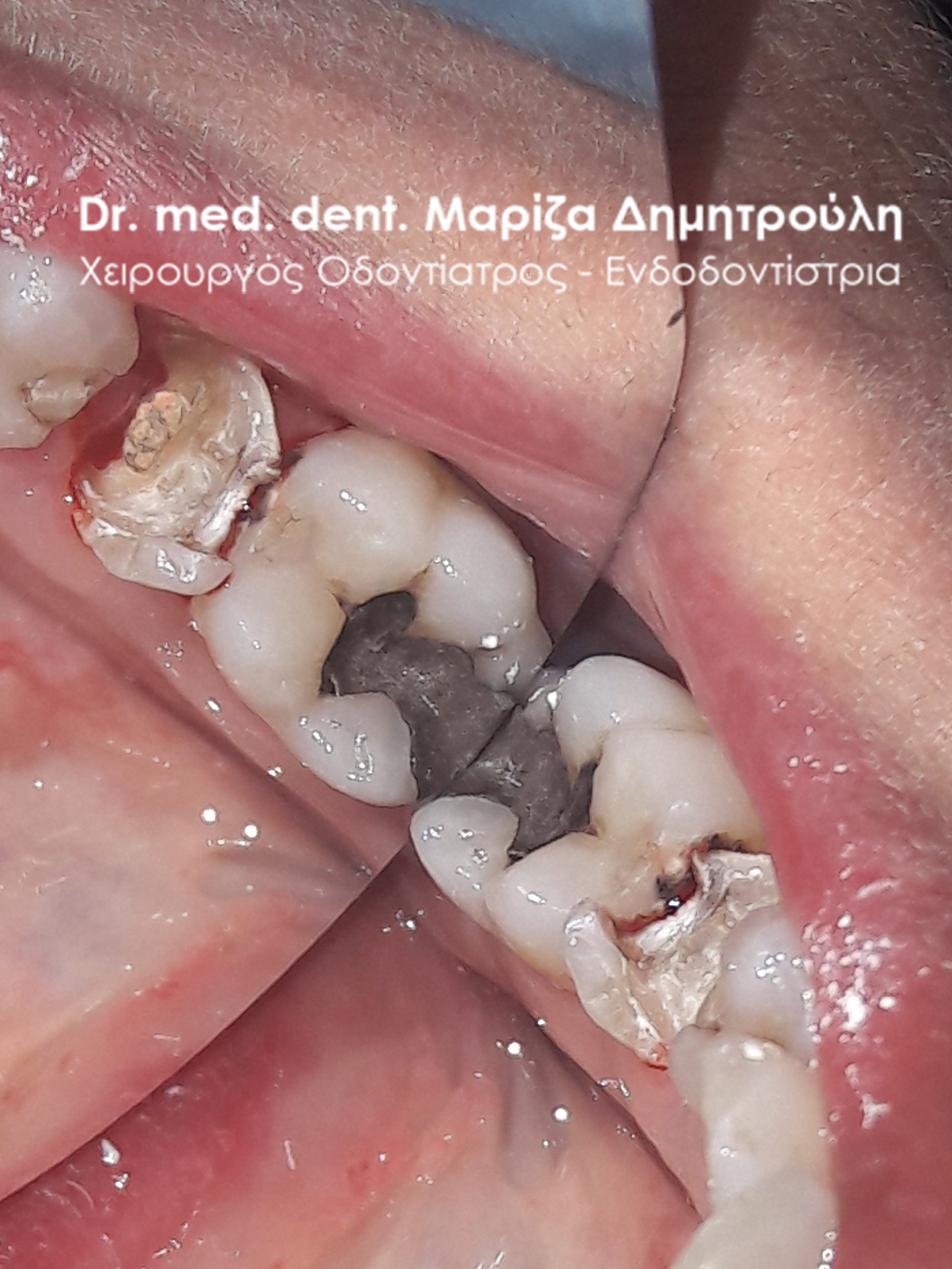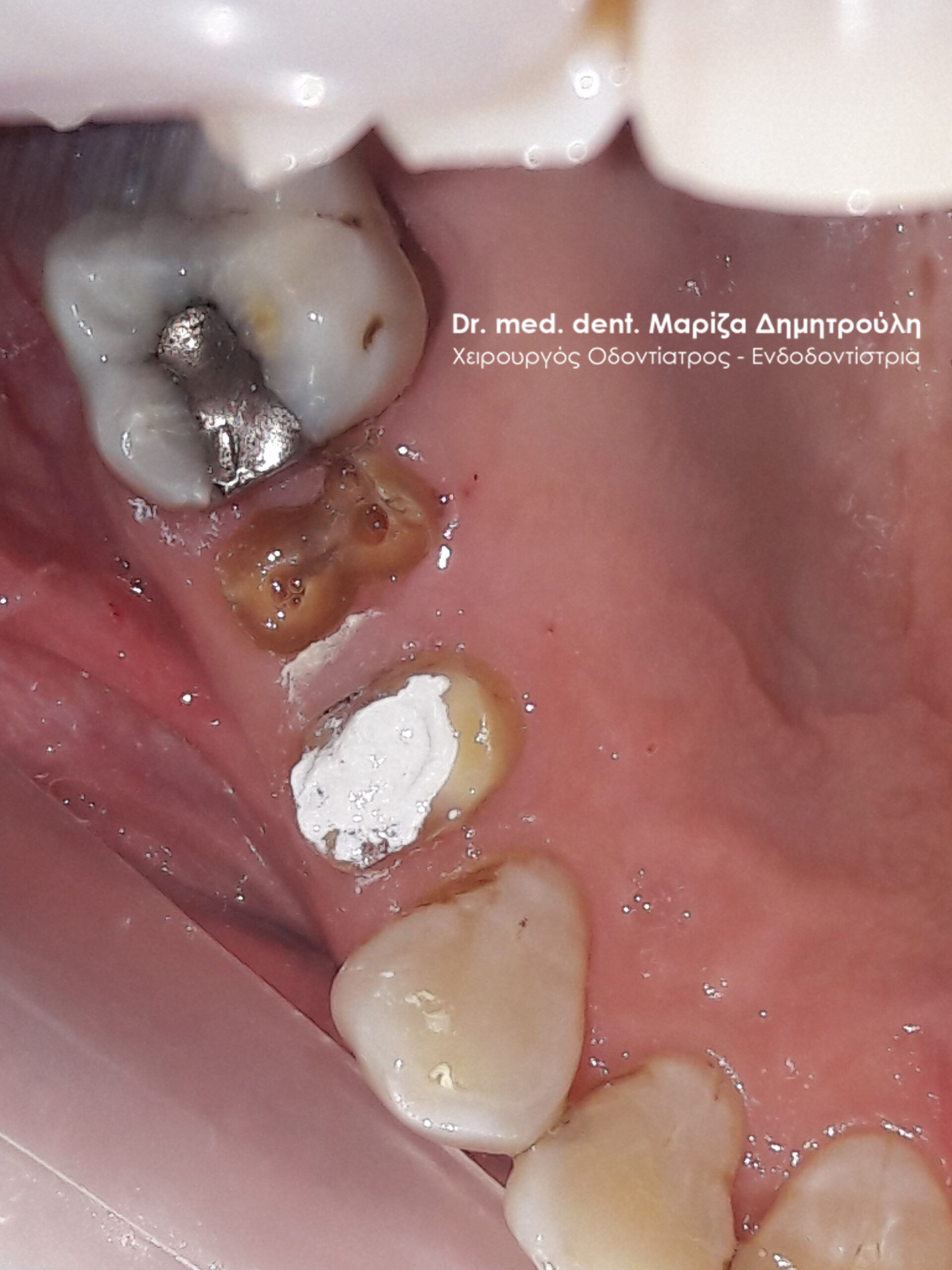 Photo of the tooth after removing the old amalgam filling and placing a temporary dental filling