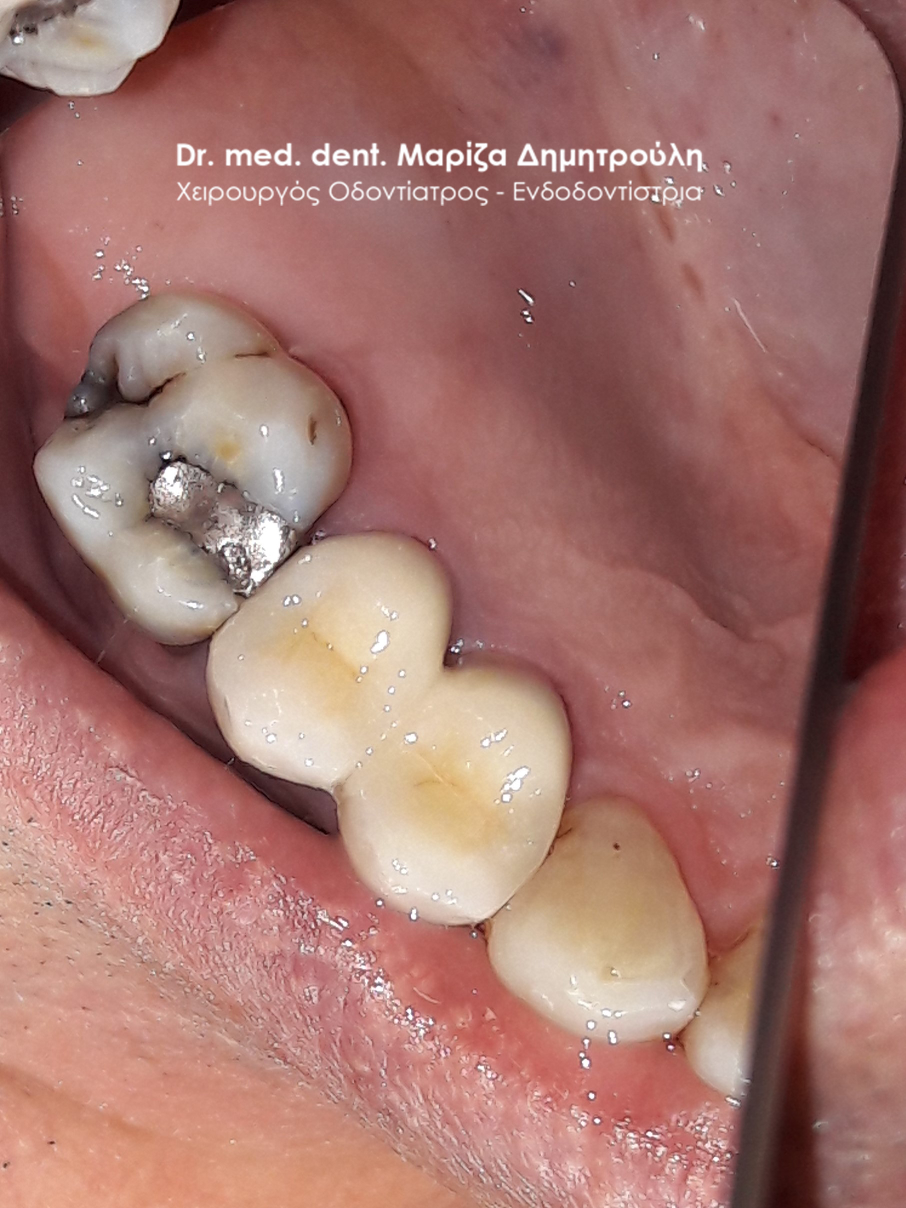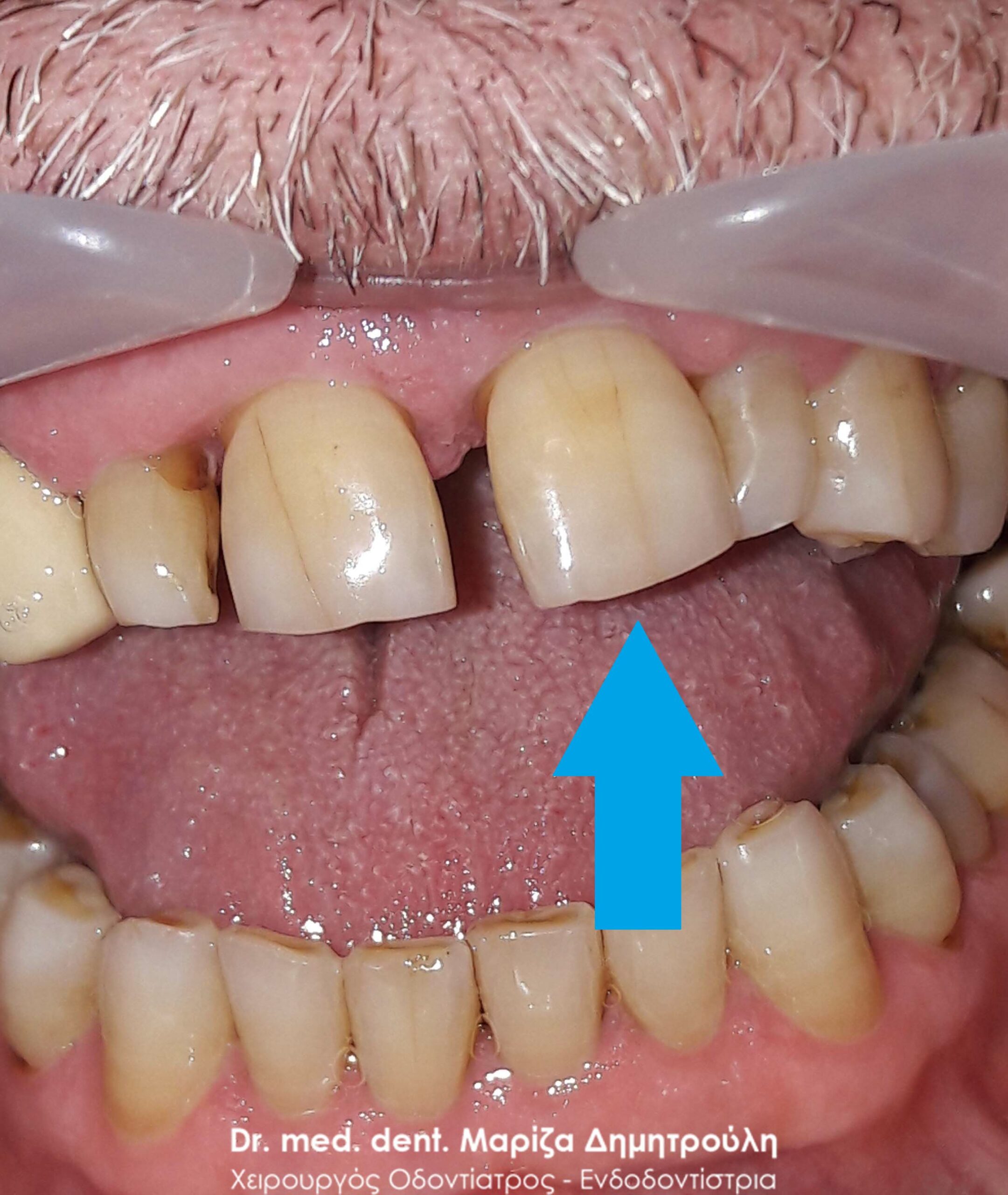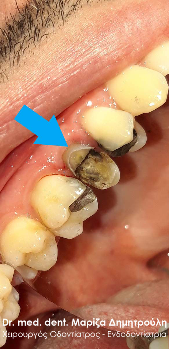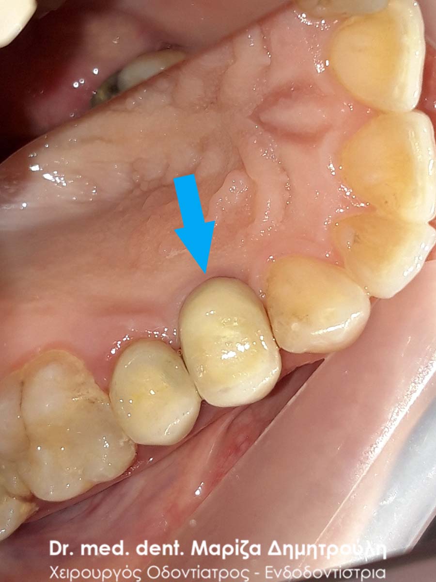Photo of the tooth after removing the bridge