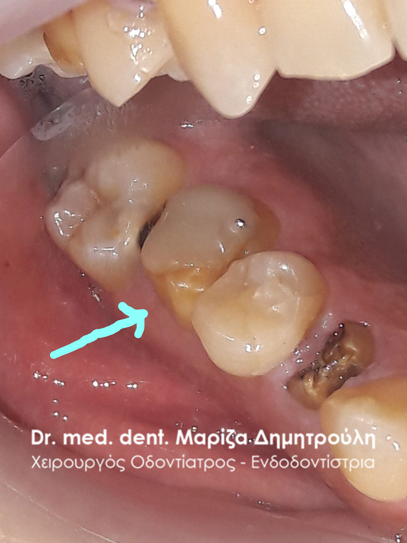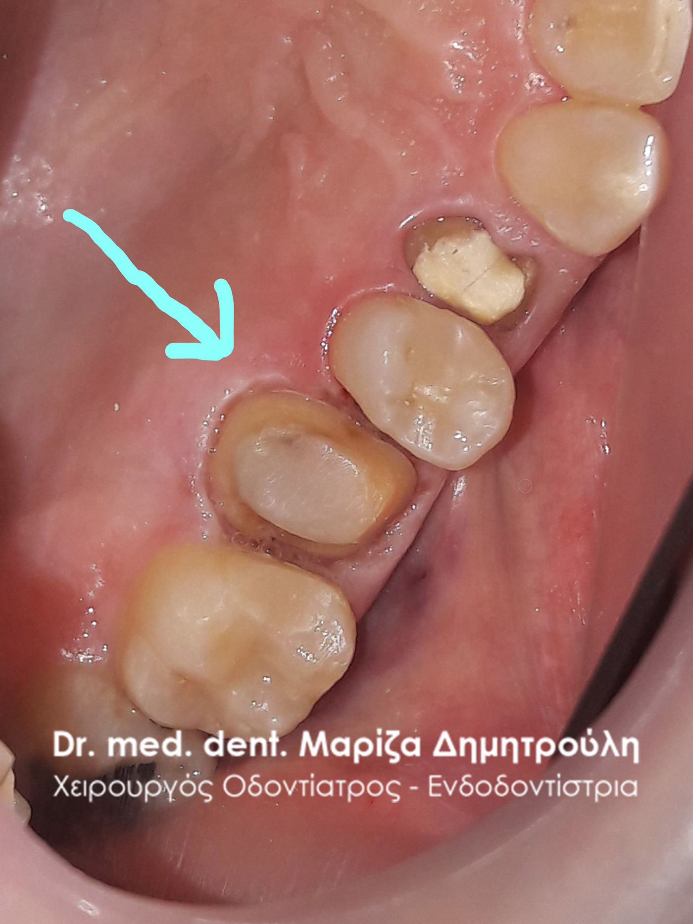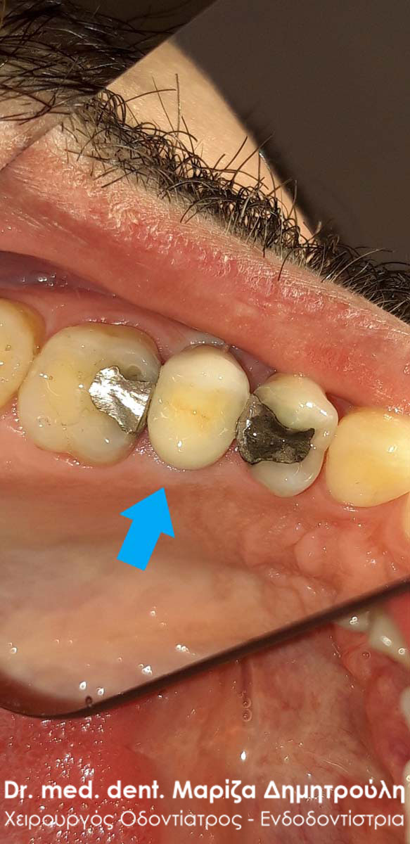Photo of the tooth after removing the bridge