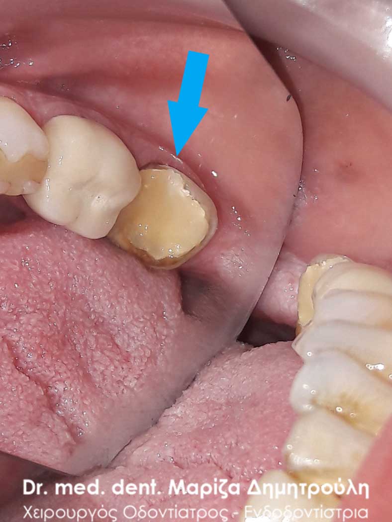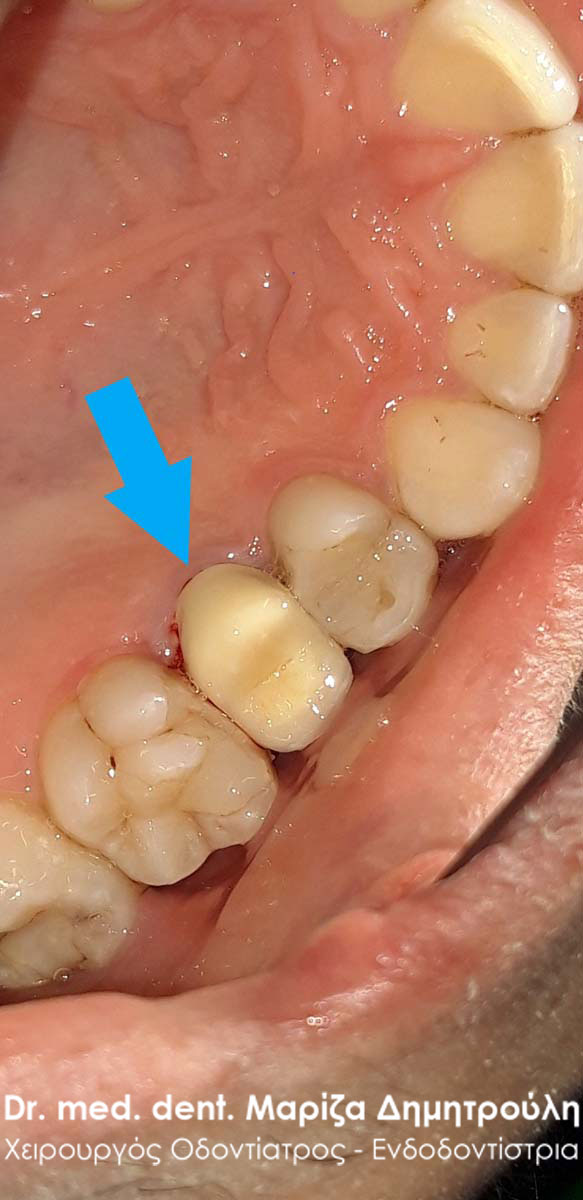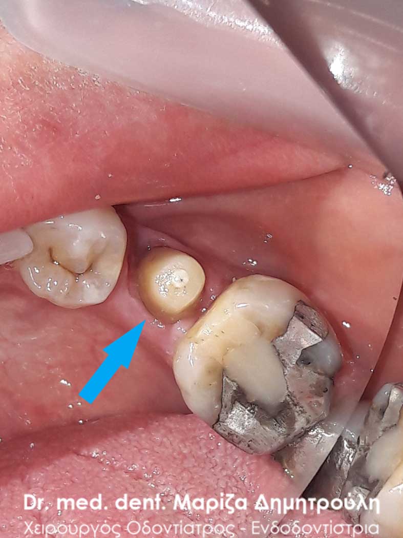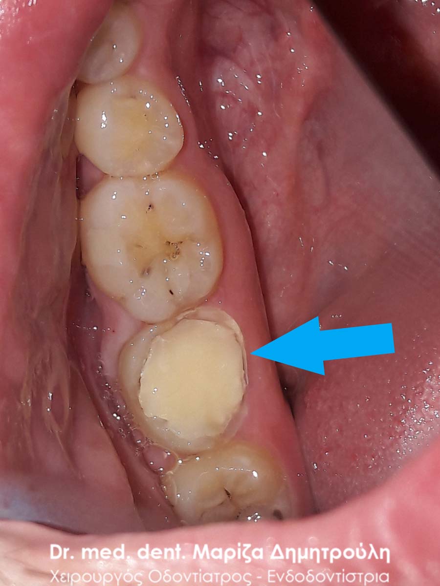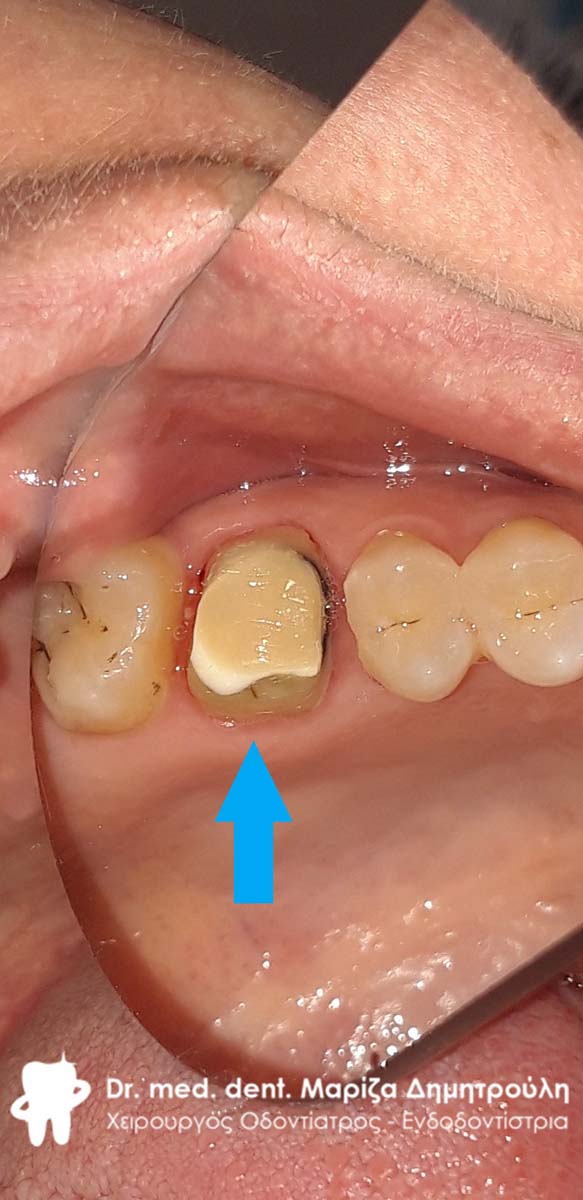 Clinical photo after removing the old dental crown