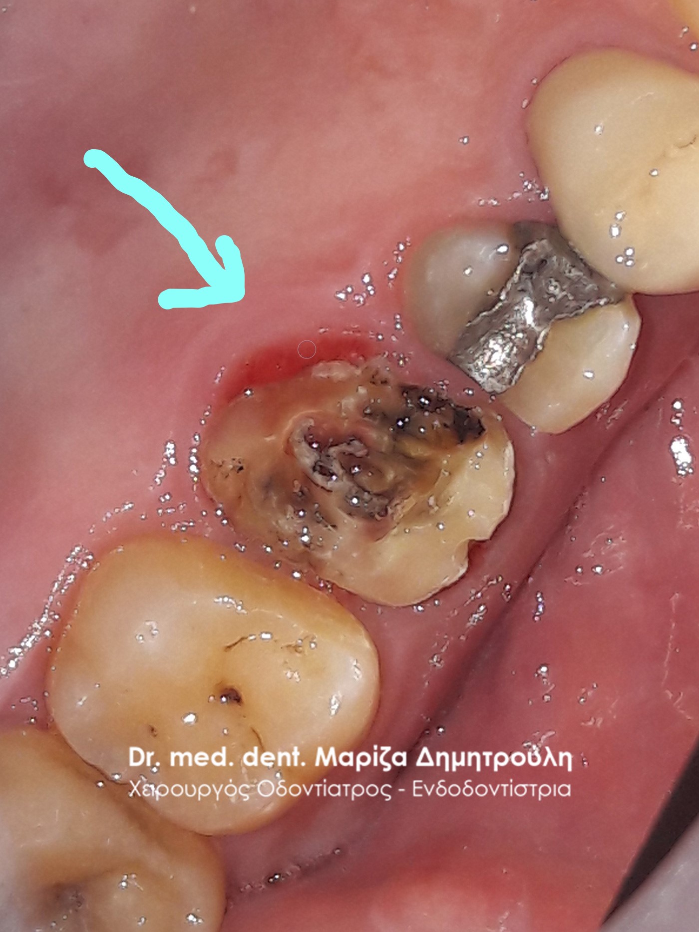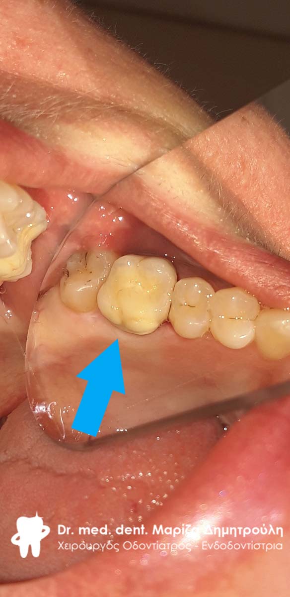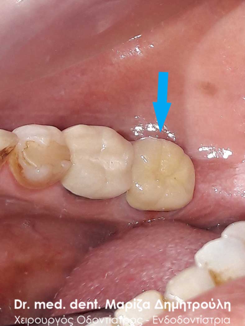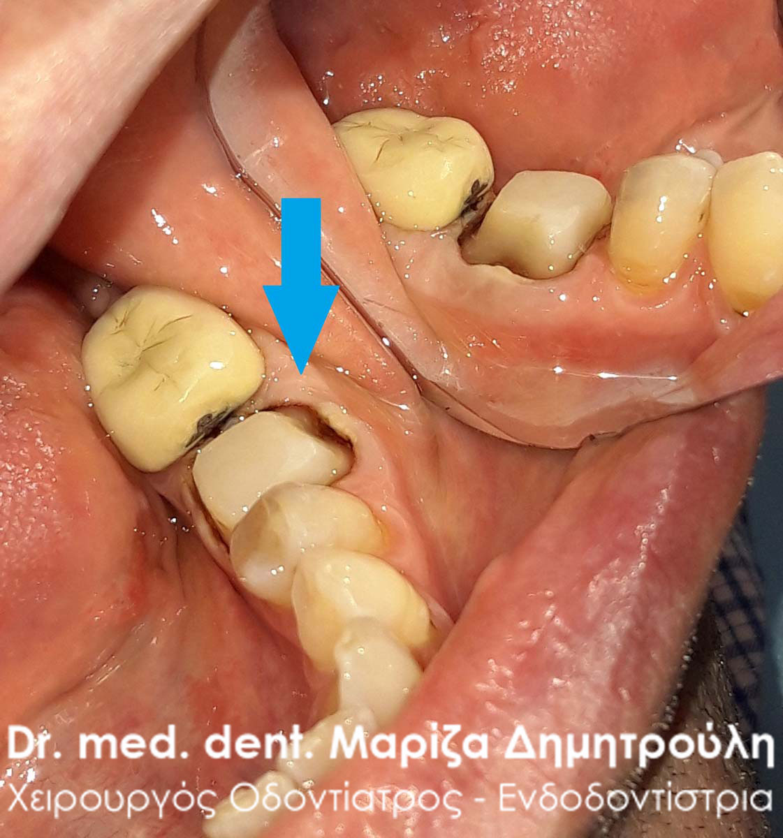 Clinical photo after removing the old dental crown
