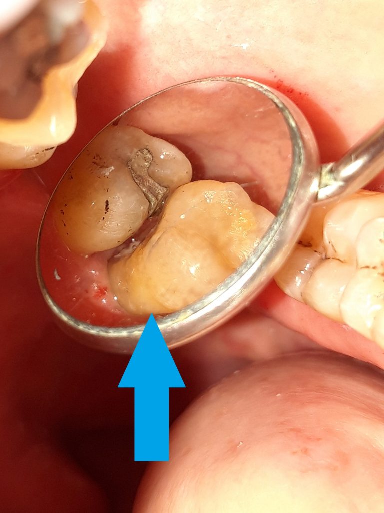 Μετά την απαραίτητη συνεννόηση με τον ασθενή αποφασίστηκε η πραγματοποίηση ενός σφραγίσματος στη ρίζα του δοντιού στο σημείο που είχε προσβληθεί από την τερηδόνα.